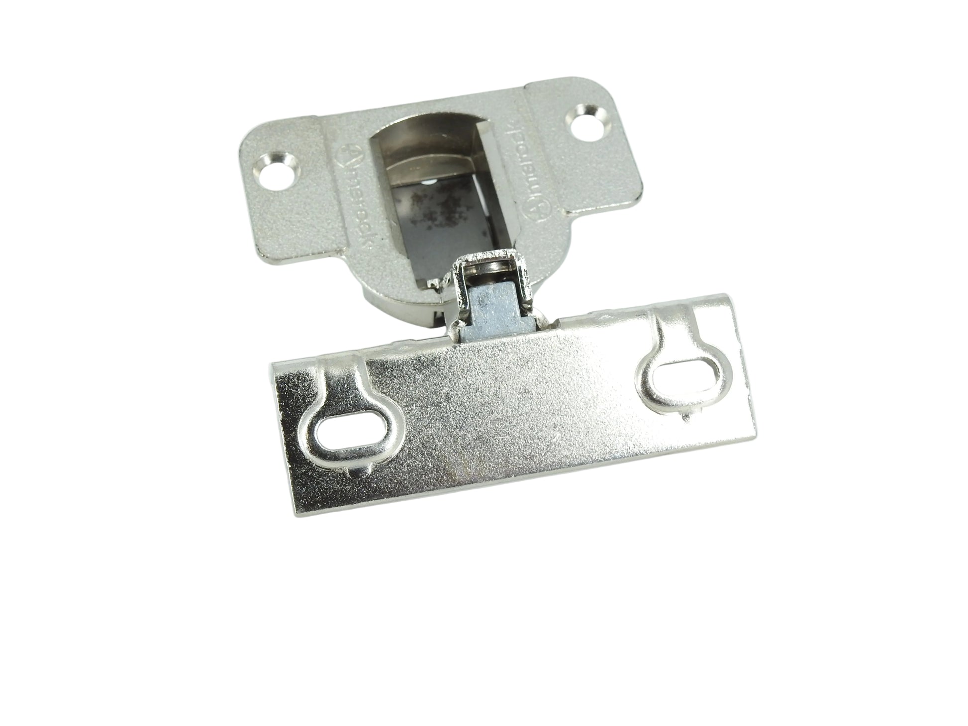 Amerock 2010 Hinge with 1 3/8" Base Plate - Nickel Finish - Complete hinge.
