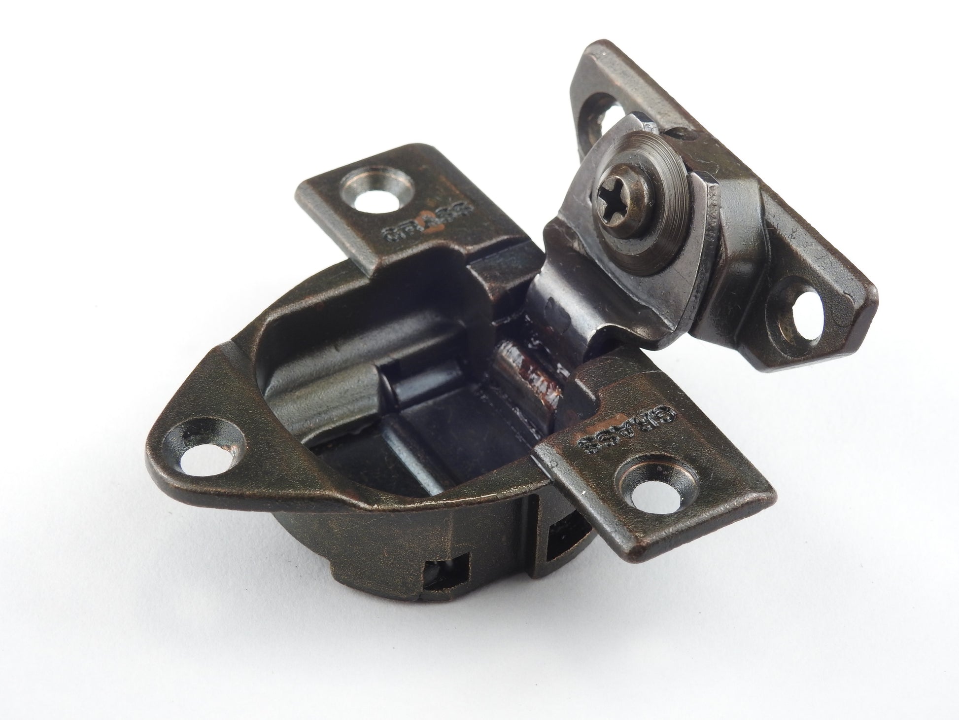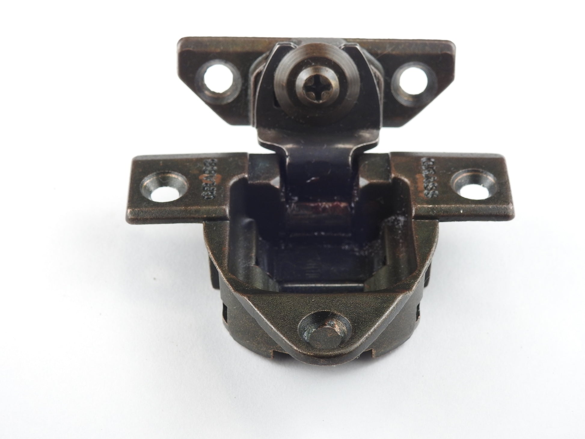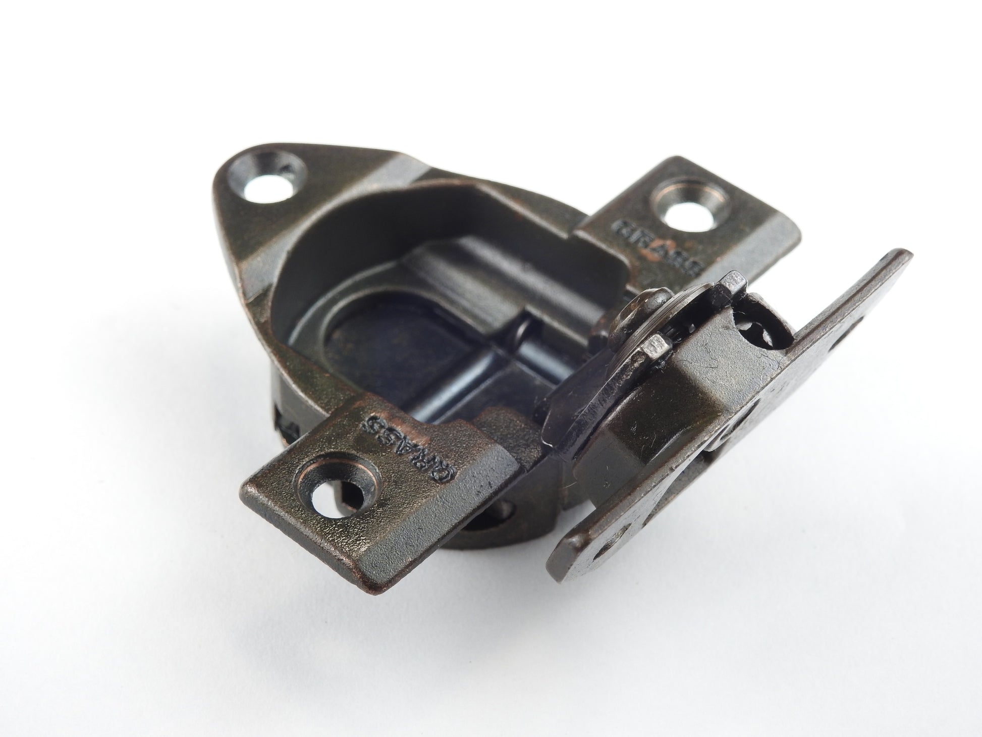 Grass 830 Rare 3 hole pattern Hinge with the 839-09 mounting plate in the Bronze Finish - Refurbished - Springs are good and the action is smooth.