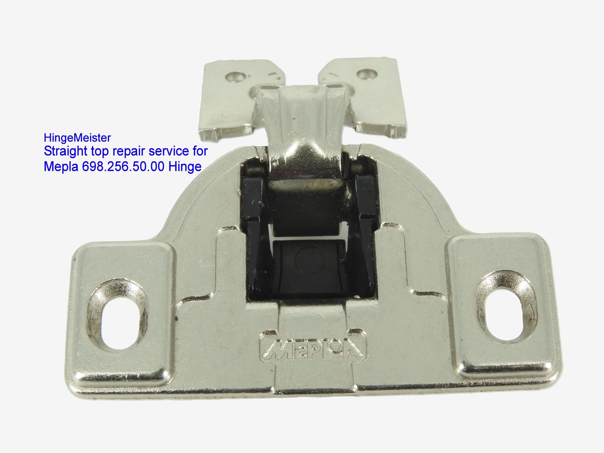 This is a hinge repair service for the Mepla 698.256.50.00 Straight top cabinet hinge. We will replace the black plastic spring pack and hinge "cup" with a new spring pack and hinge cup. Your old mounting plate will be reused to maintain the proper hinge overlay. Repair turn around is usually 1 to 2 days plus shipping time.