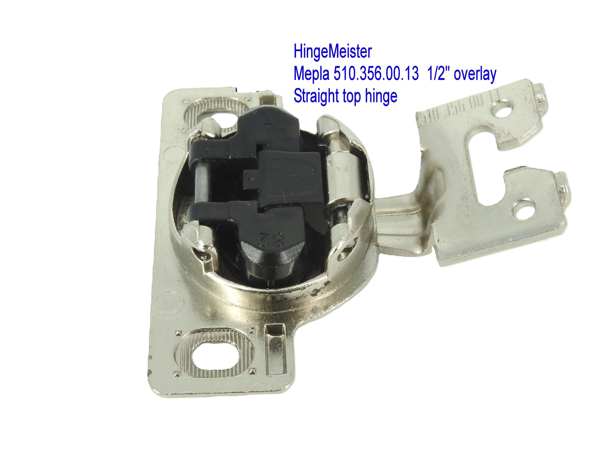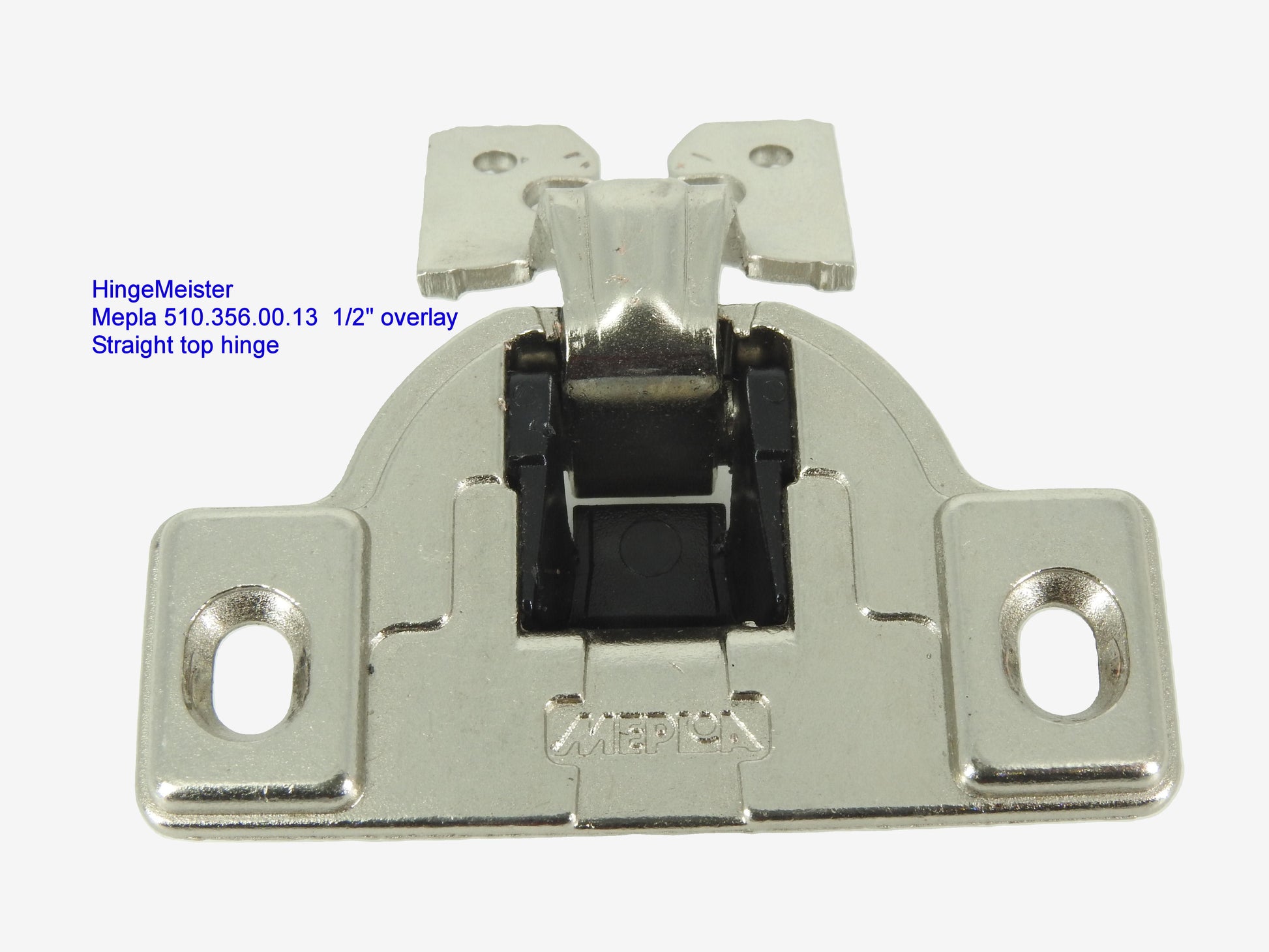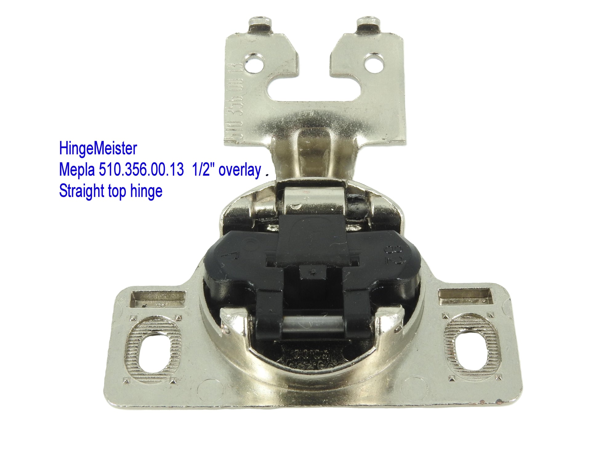 Mepla Hinge 698.256.50.00 - 1/2" Overlay - 510.356.00.13 "C" plate - Straight top hinge