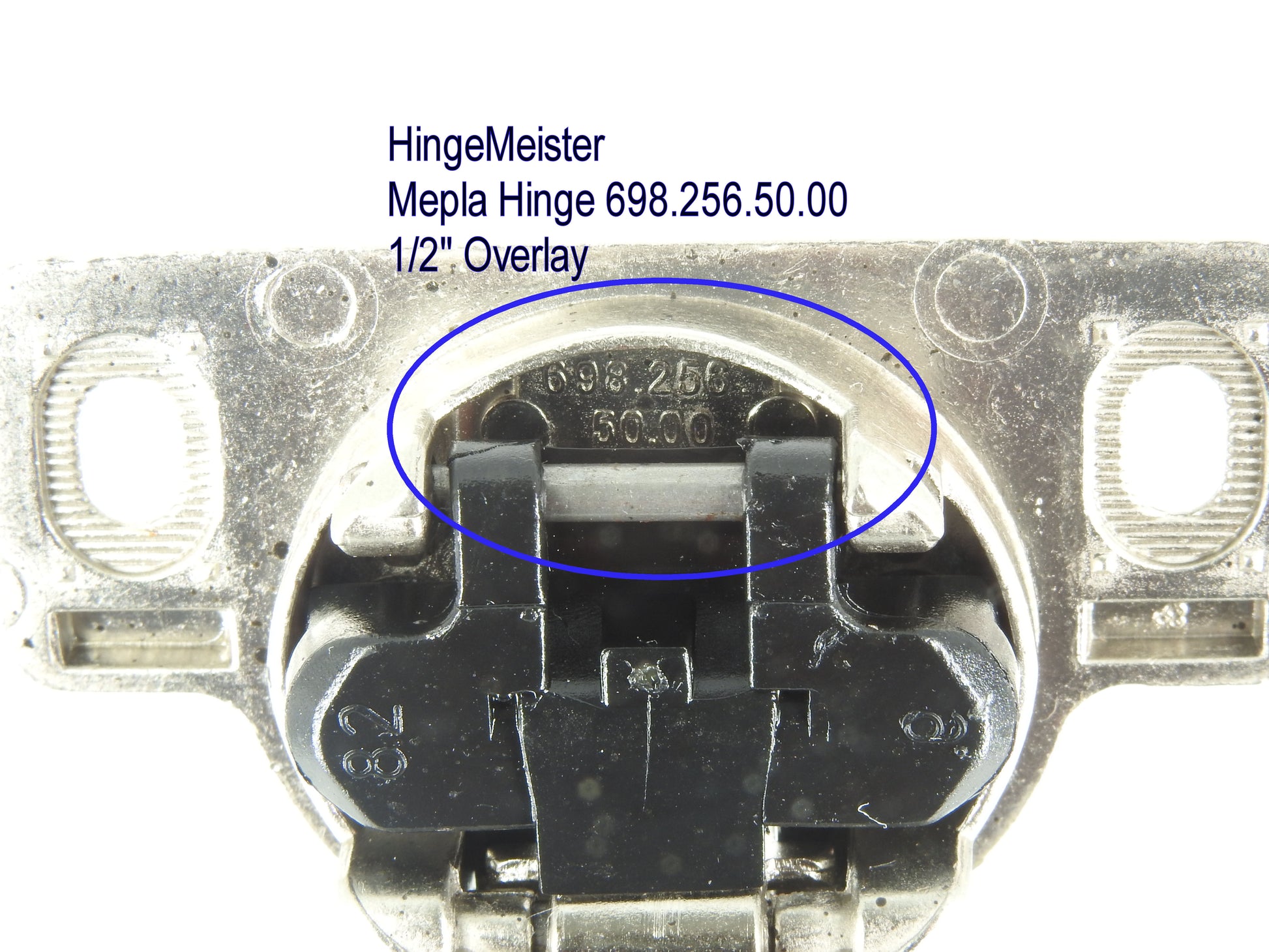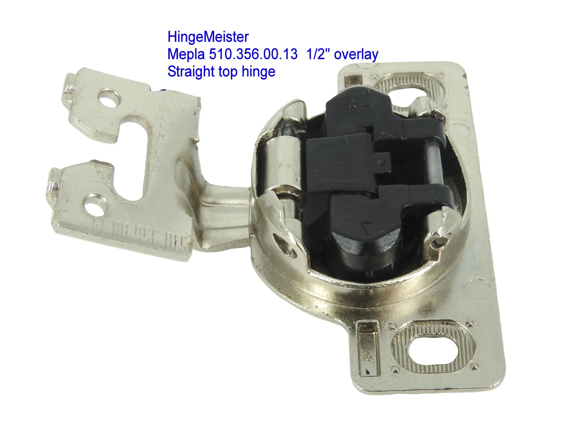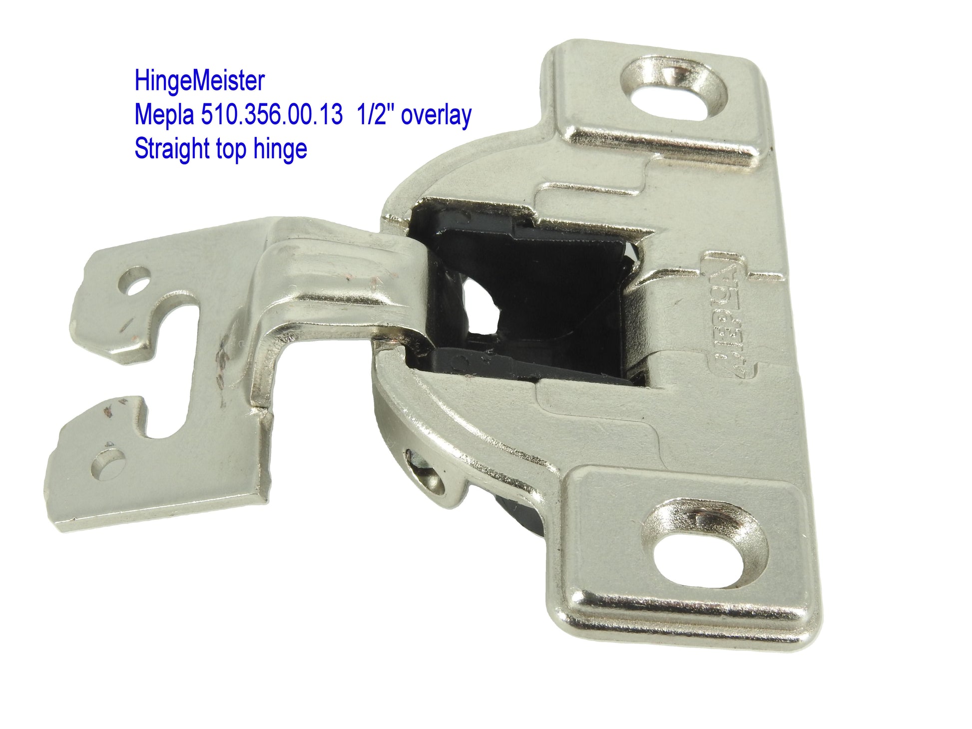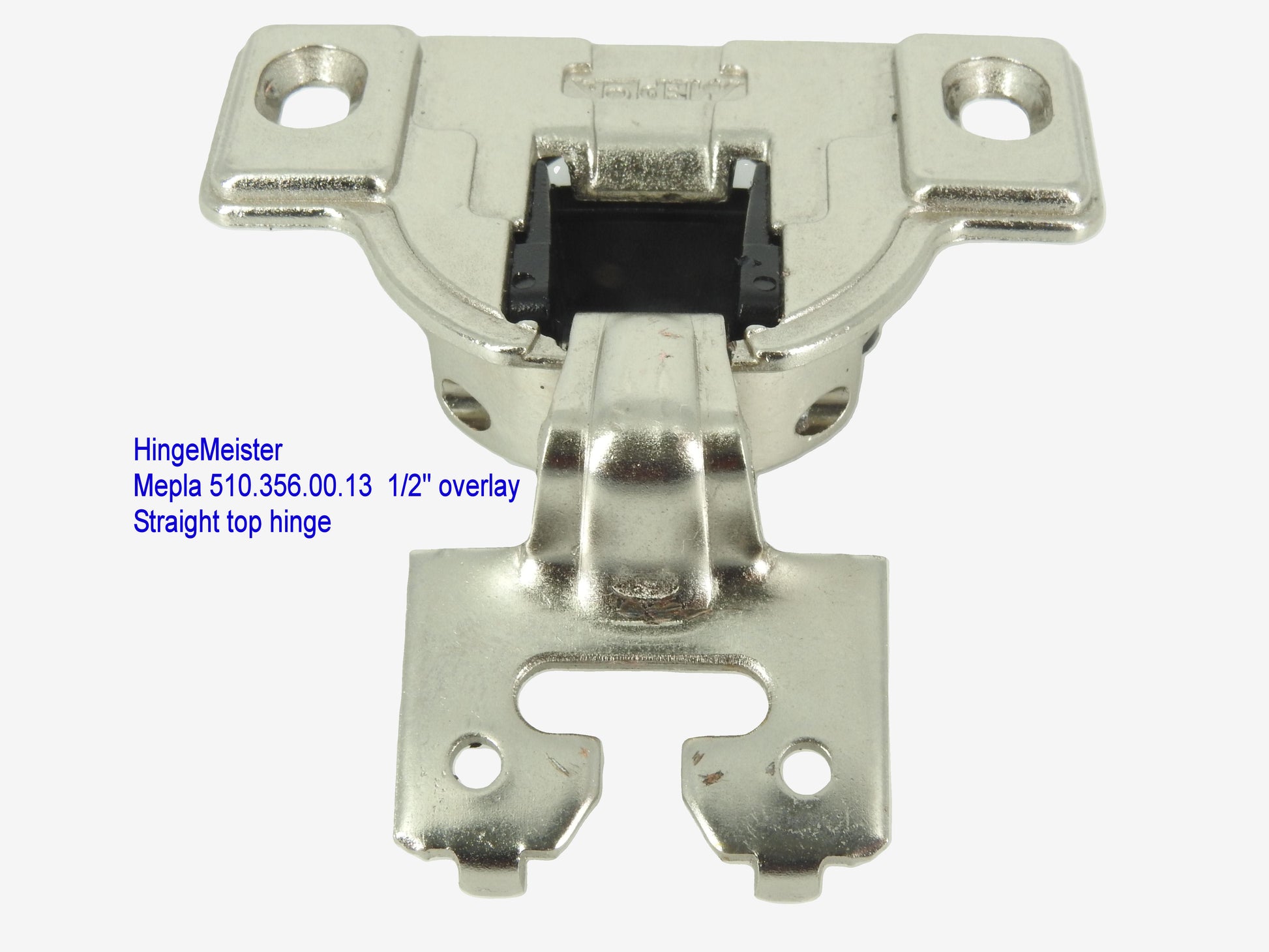 Mepla Hinge 698.256.50.00 - 1/2" Overlay - 510.356.00.13 "C" plate - Straight top hinge