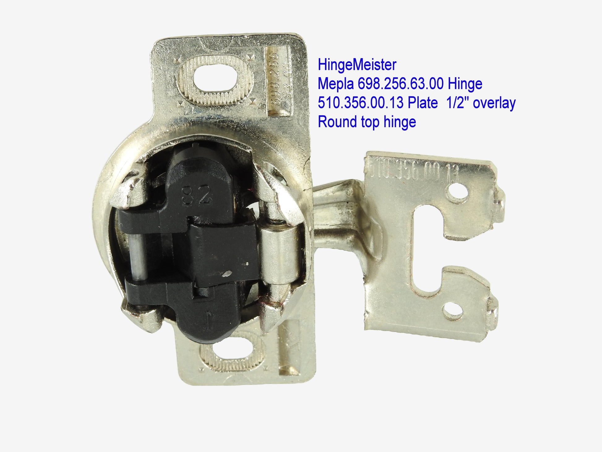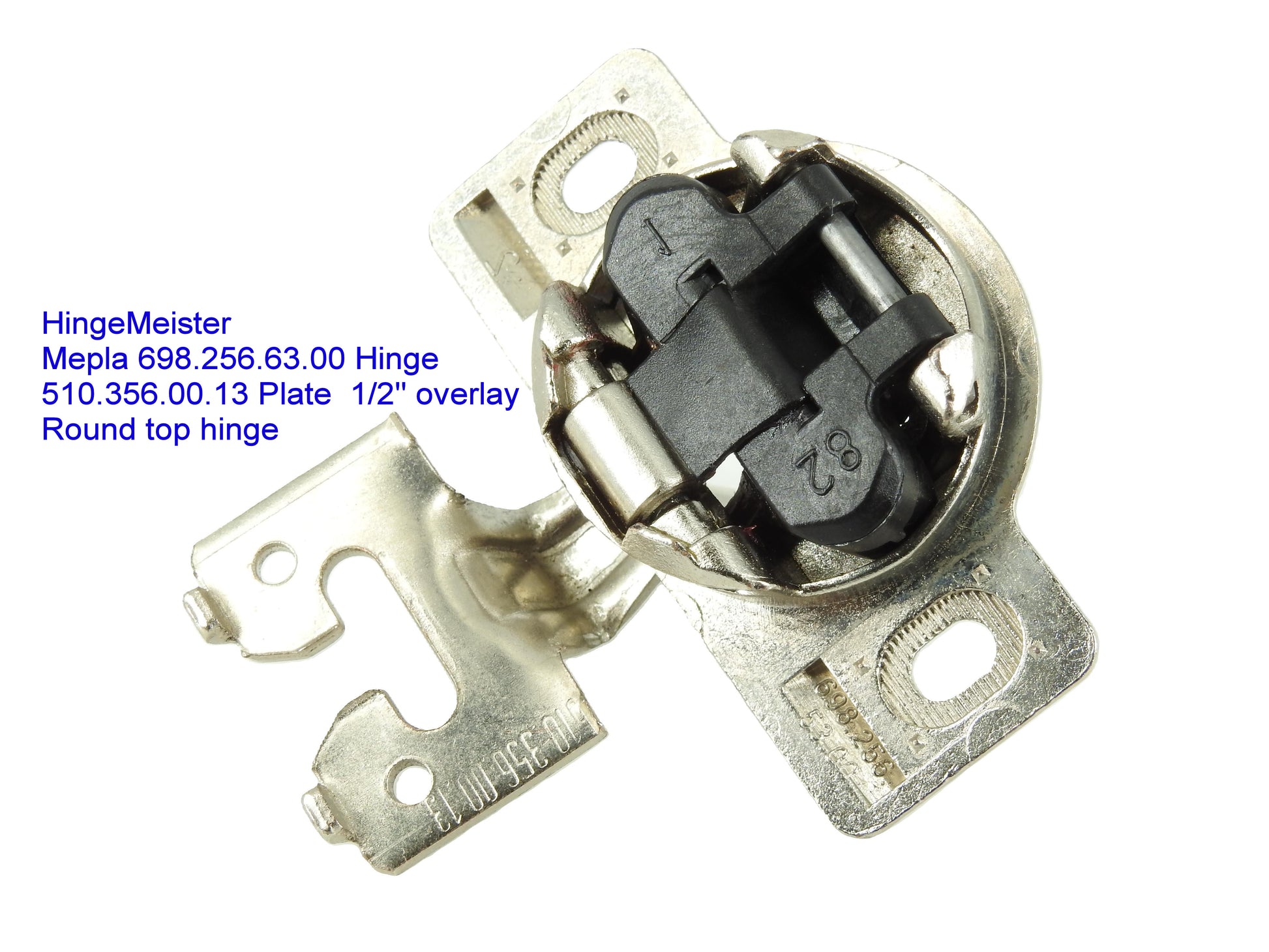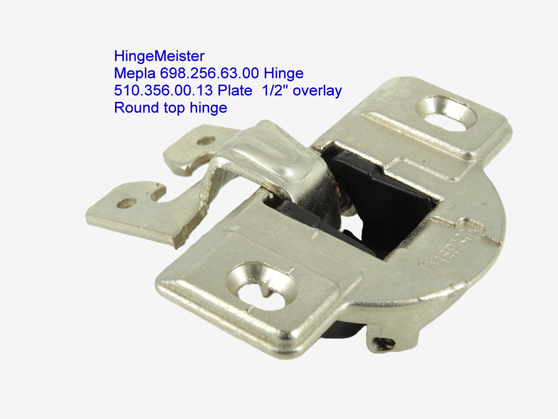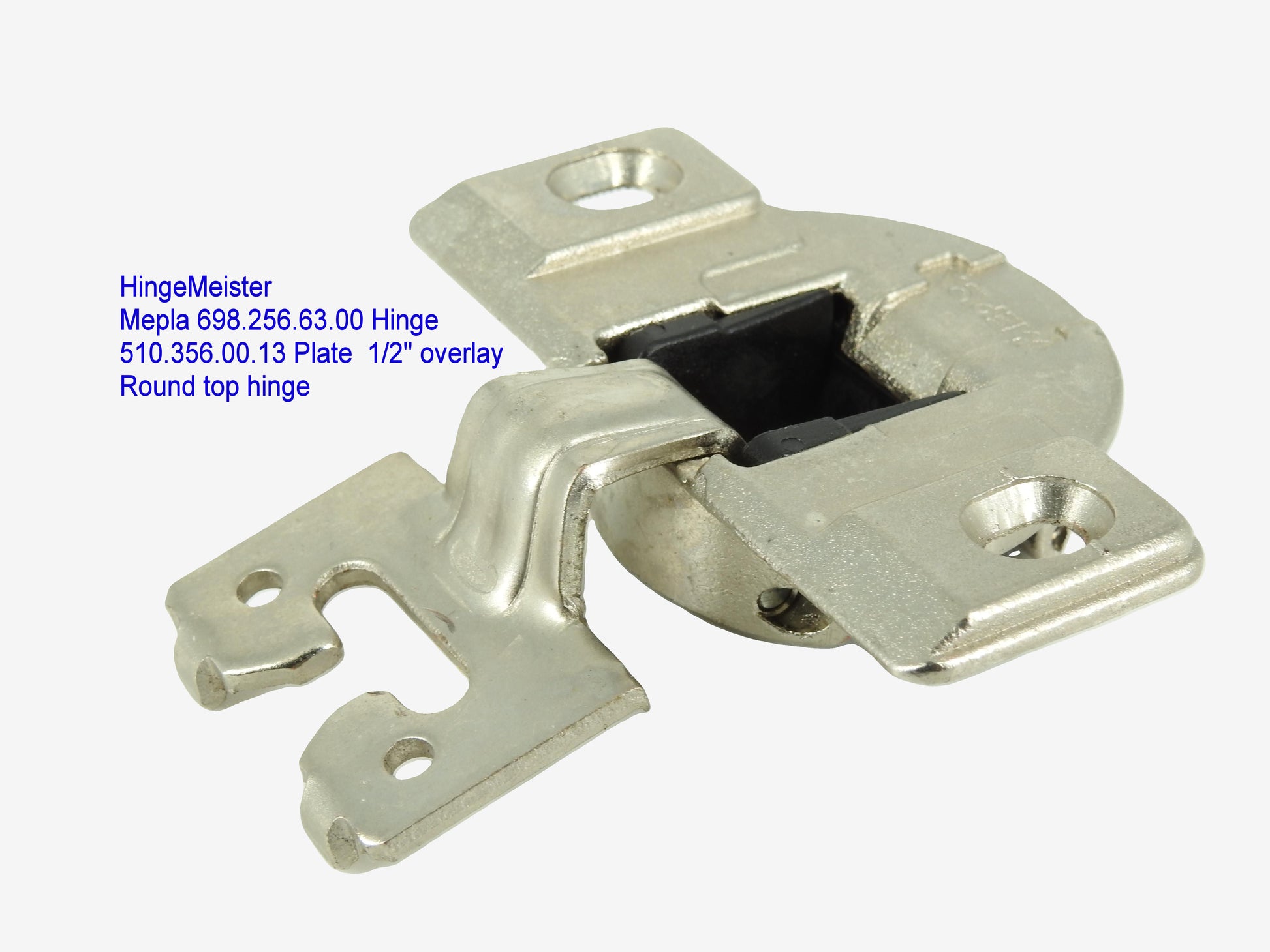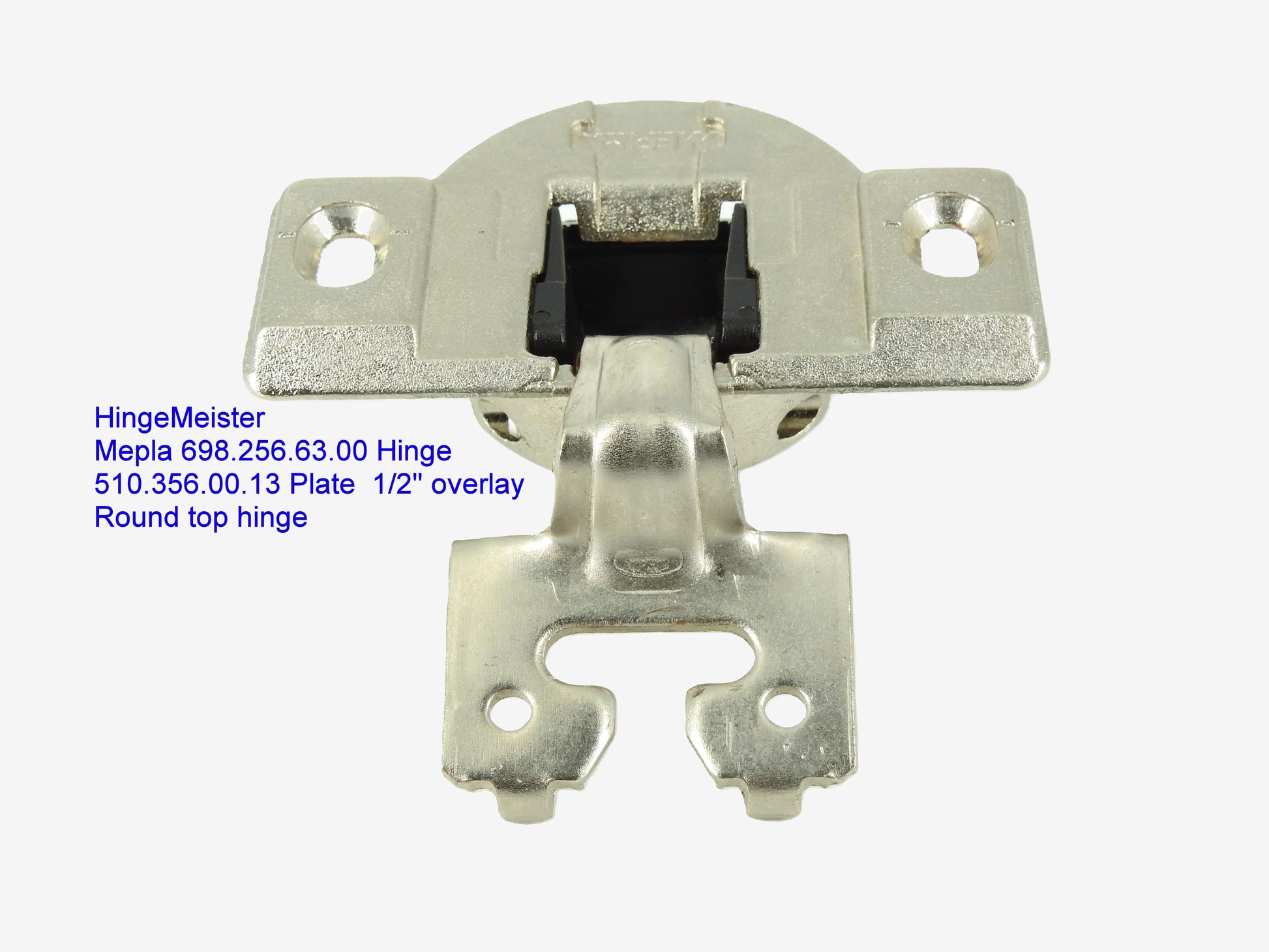 Mepla Hinge 698.256.53.00 - 1/2" Overlay - 510.356.00.13 "C" plate - Round top hinge